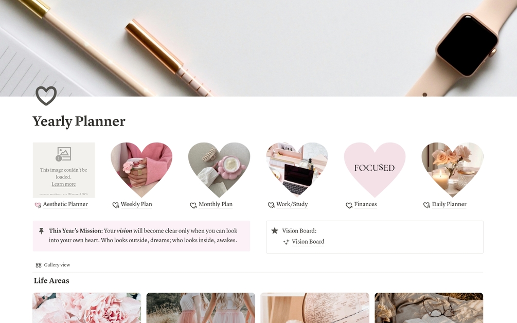 Aesthetic Life Planner Notion Template | Daily, Weekly, Monthly, Finance & Habit Tracker