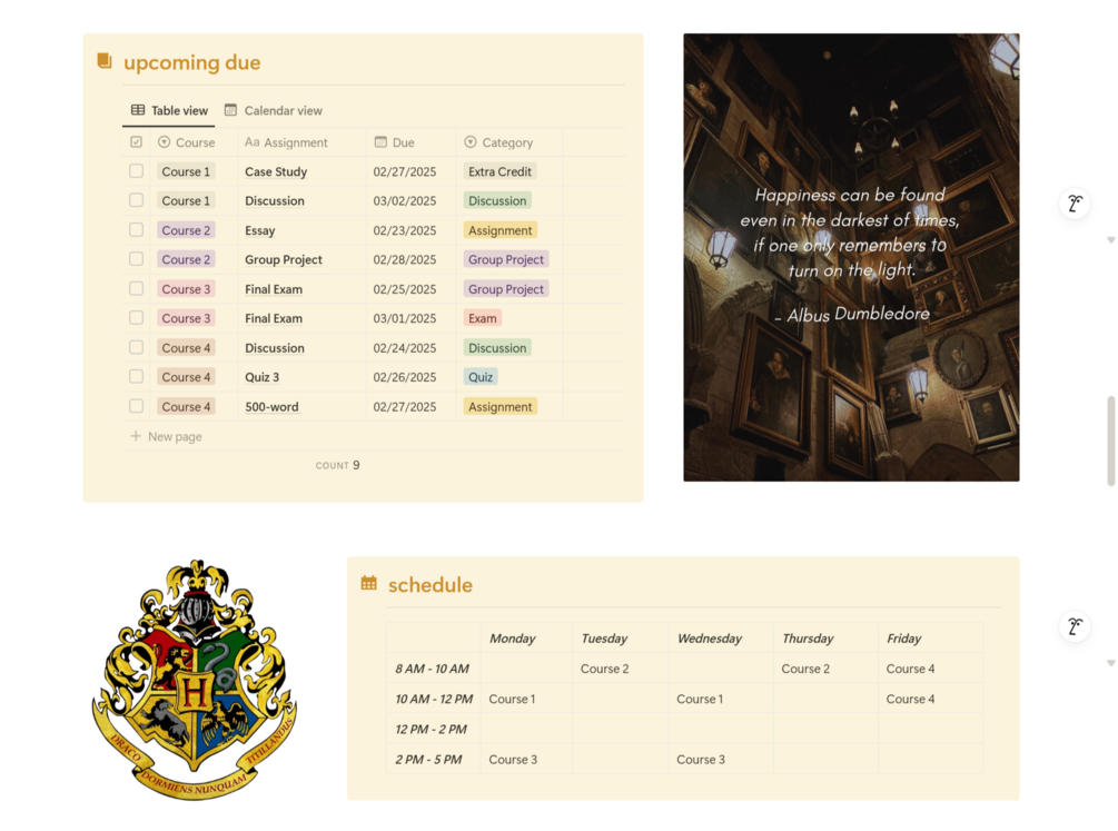 Organize your academic life like a true Hogwarts scholar! The Harry Potter Student Planner brings a touch of magic to your study routine with a beautifully themed Notion template.
